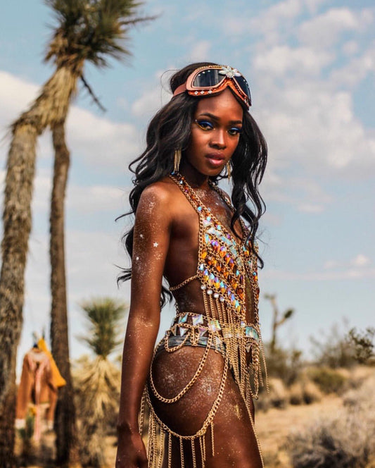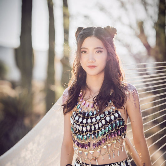 Since my first encounter with festival culture at EDC in 2014, I've been captivated by the vibrant energy and creativity that defines this community. Inspired by the freedom of expression and the desire to stand out, I began crafting my own festival outfits, pouring my passion into every stitch.