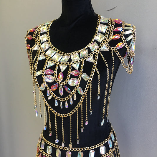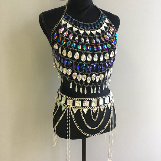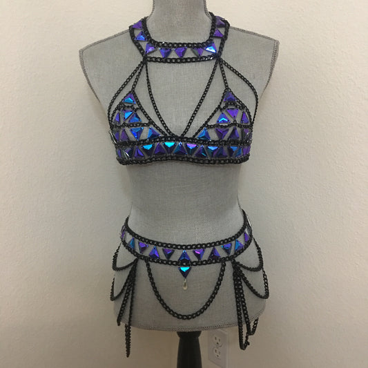 Purple Queen body chain jewelry, burning man outfit, edc outfit, rave bra, festival top