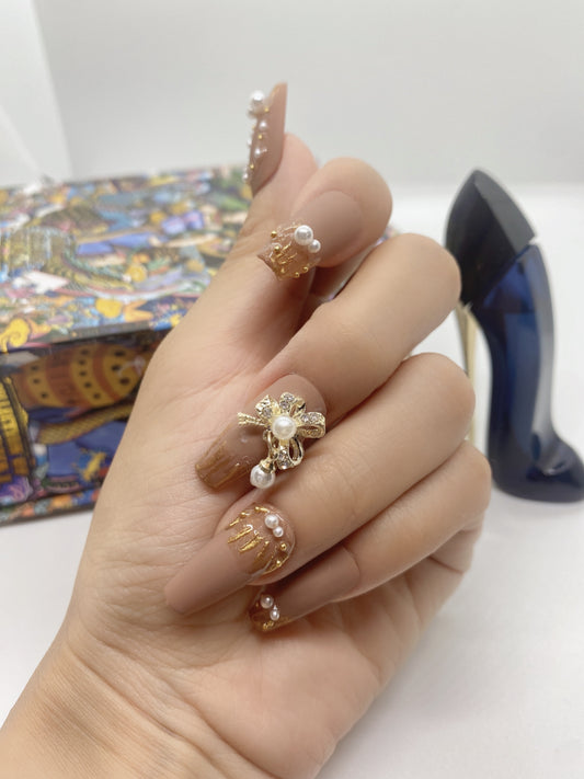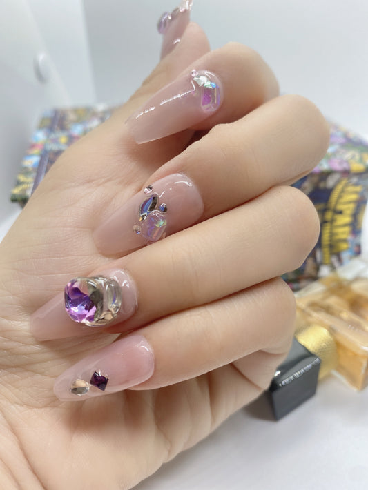 10 pcs customized painted press on nail orchid smoke flash Rhinestones