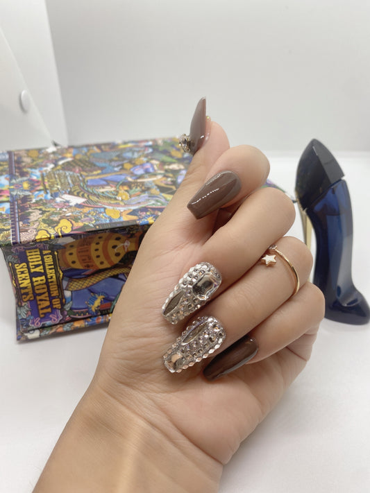 10 pcs coffin fake press on nail retro luxury Customized painted nail flash diamond crystal Rhinestones