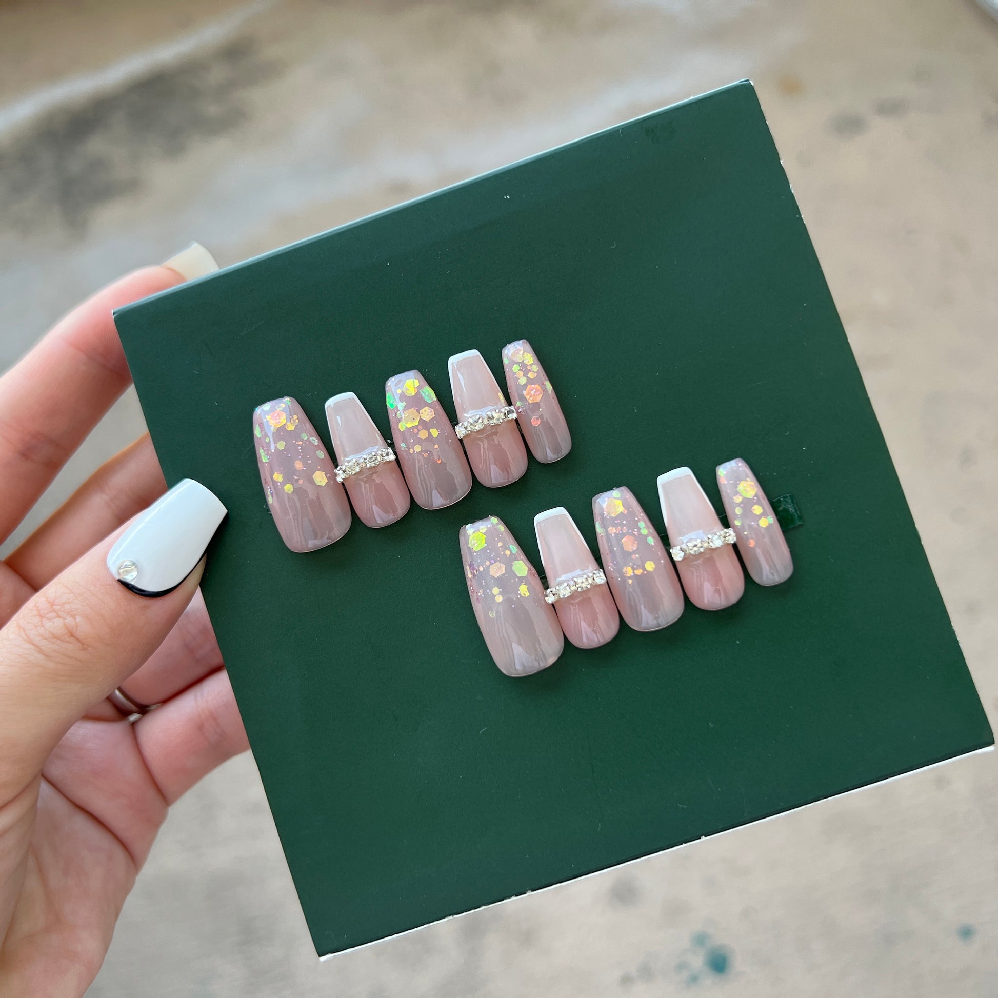 Neutral Bling Glitter Baby Boomer Gel Press on Nail